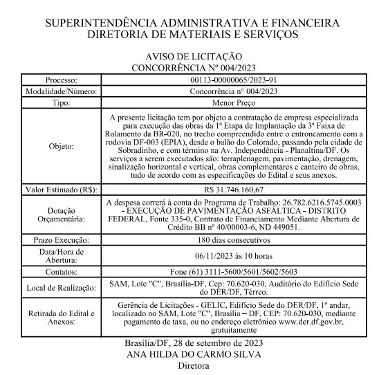Uma das obras mais aguardadas pelos moradores da região norte do Distrito Federal vai sair do papel: a terceira faixa de rolamento da BR-020. A licitação foi publicada no Diário Oficial do DF (DODF) nesta sexta-feira (29) e compreende um investimento de R$ 31,7 milhões na primeira etapa de implantação.